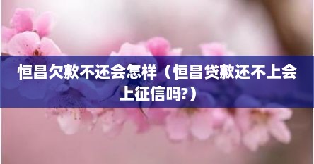 本篇文章给大家谈谈恒昌欠款不还会怎样的知识,其中也会对恒昌贷款还不上会上征信吗?进行解释,如果能碰巧解决你现在面临的问题,希望对各位有所帮助!