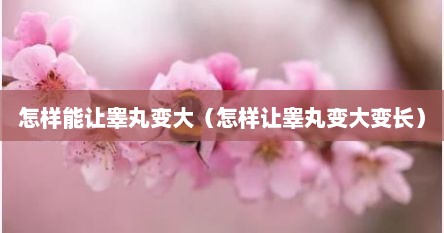 本篇文章给大家谈谈怎样能让睾丸变大的知识,其中也会对怎样让睾丸变大变长进行解释,如果能碰巧解决你现在面临的问题,希望对各位有所帮助!