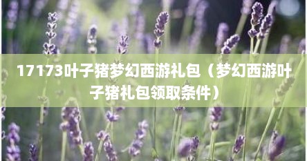 本篇文章给大家谈谈17173叶子猪梦幻西游礼包的知识,其中也会对梦幻西游叶子猪礼包领取条件进行解释,如果能碰巧解决你现在面临的问题,希望对各位有所帮助!