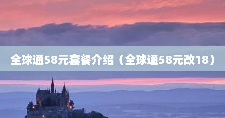 本篇文章给大家谈谈全球通58元套餐介绍的知识,其中也会对全球通58元改18进行解释,如果能碰巧解决你现在面临的问题,希望对各位有所帮助!
