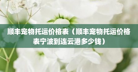 本篇文章给大家谈谈顺丰宠物托运价格表的知识,其中也会对顺丰宠物托运价格表宁波到连云港多少钱进行解释,如果能碰巧解决你现在面临的问题,希望对各位有所帮助!