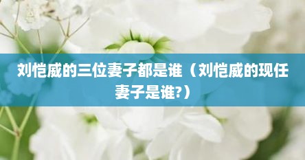 1、刘恺威目前并没有现任妻子哦,不过他的感情生活可是娱乐圈的一大热点呢!说到刘恺威,大家可能首先想到的是他和杨幂的那段婚姻,两人育有一女,不过后来还是遗憾分开了。而最近,刘恺威的感情生活又有了新的动态,不过这次可不是“妻子”,而是“女友”哦!据最新消息,刘恺威曾和演员兼主持人李晓峰传出过恋情。
