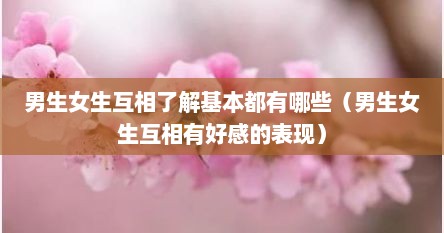 本篇文章给大家谈谈男生女生互相了解基本都有哪些的知识,其中也会对男生女生互相有好感的表现进行解释,如果能碰巧解决你现在面临的问题,希望对各位有所帮助!