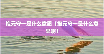 本篇文章给大家谈谈抱元守一是什么意思的知识,其中也会对抱元守一是什么意思啊进行解释,如果能碰巧解决你现在面临的问题,希望对各位有所帮助!