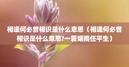 本篇文章给大家谈谈相逢何必曾相识是什么意思的知识,其中也会对相逢何必曾相识是什么意思?一蓑烟雨任平生进行解释,如果能碰巧解决你现在面临的问题,希望对各位有所帮助!