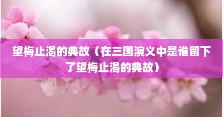 本篇文章给大家谈谈望梅止渴的典故的知识,其中也会对在三国演义中是谁留下了望梅止渴的典故进行解释,如果能碰巧解决你现在面临的问题,希望对各位有所帮助!