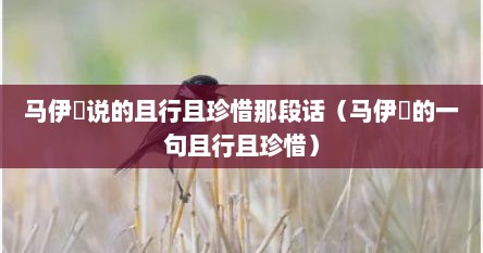 你怎么理解马伊俐曾经说过的“且行且珍惜”?