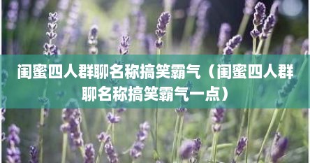 个闺蜜的群名大全四人馆 逗逼四人组 4人的老巢。四大仙女 4A级风景区 姐妹四人有福同享。四仙女下凡 仙女下凡体验群 撩汉少女群。弱智患者关爱中心 1各国首脑 1亚洲富婆交流群。1四人世界 1一起走过的日子 1亲爱的四人组。