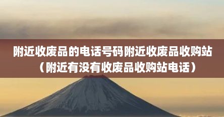本篇文章给大家谈谈附近收废品的电话号码附近收废品收购站的知识,其中也会对附近有没有收废品收购站电话进行解释,如果能碰巧解决你现在面临的问题,希望对各位有所帮助!