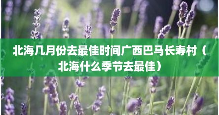 本篇文章给大家谈谈北海几月份去最佳时间广西巴马长寿村的知识,其中也会对北海什么季节去最佳进行解释,如果能碰巧解决你现在面临的问题,希望对各位有所帮助!